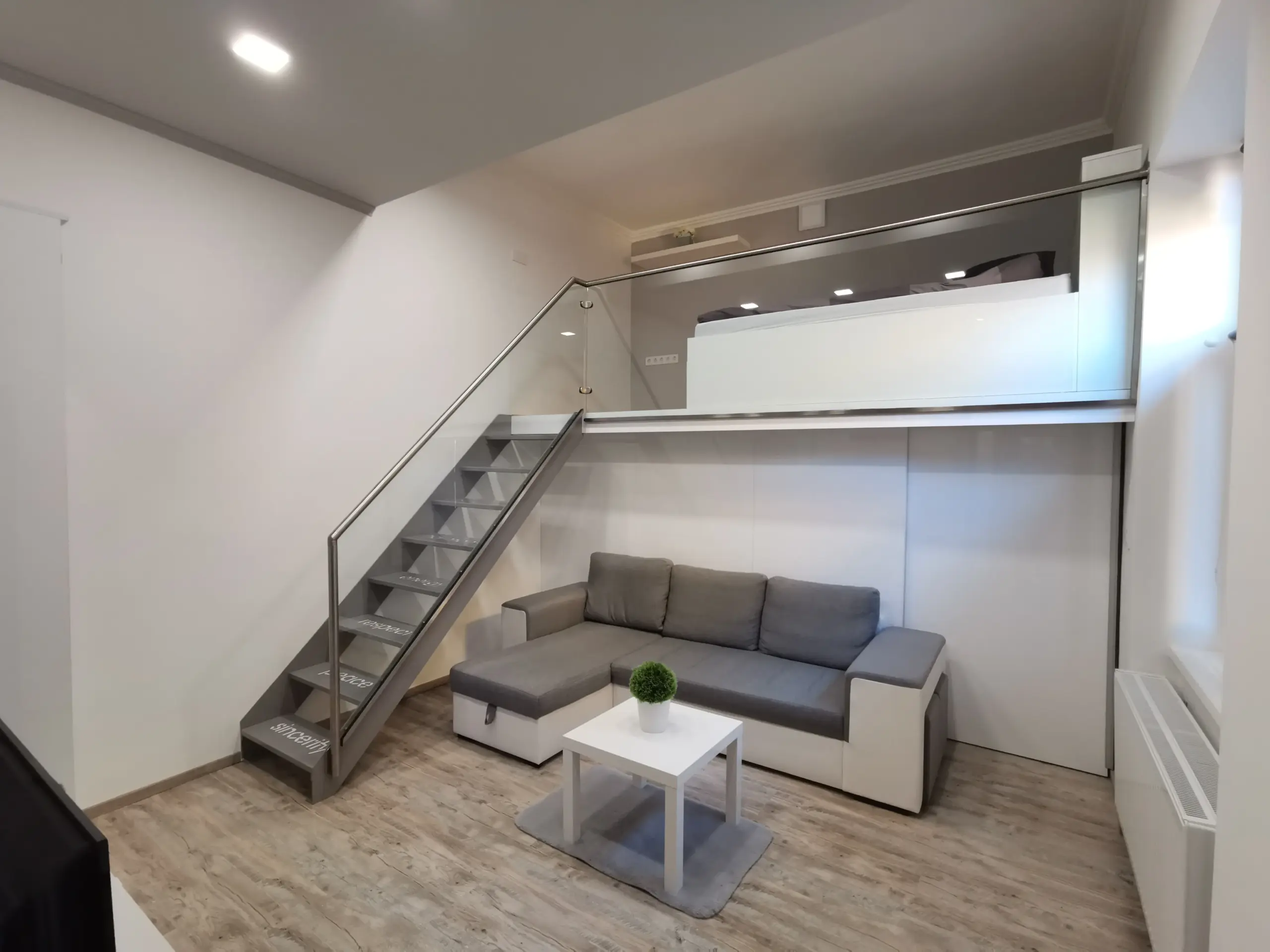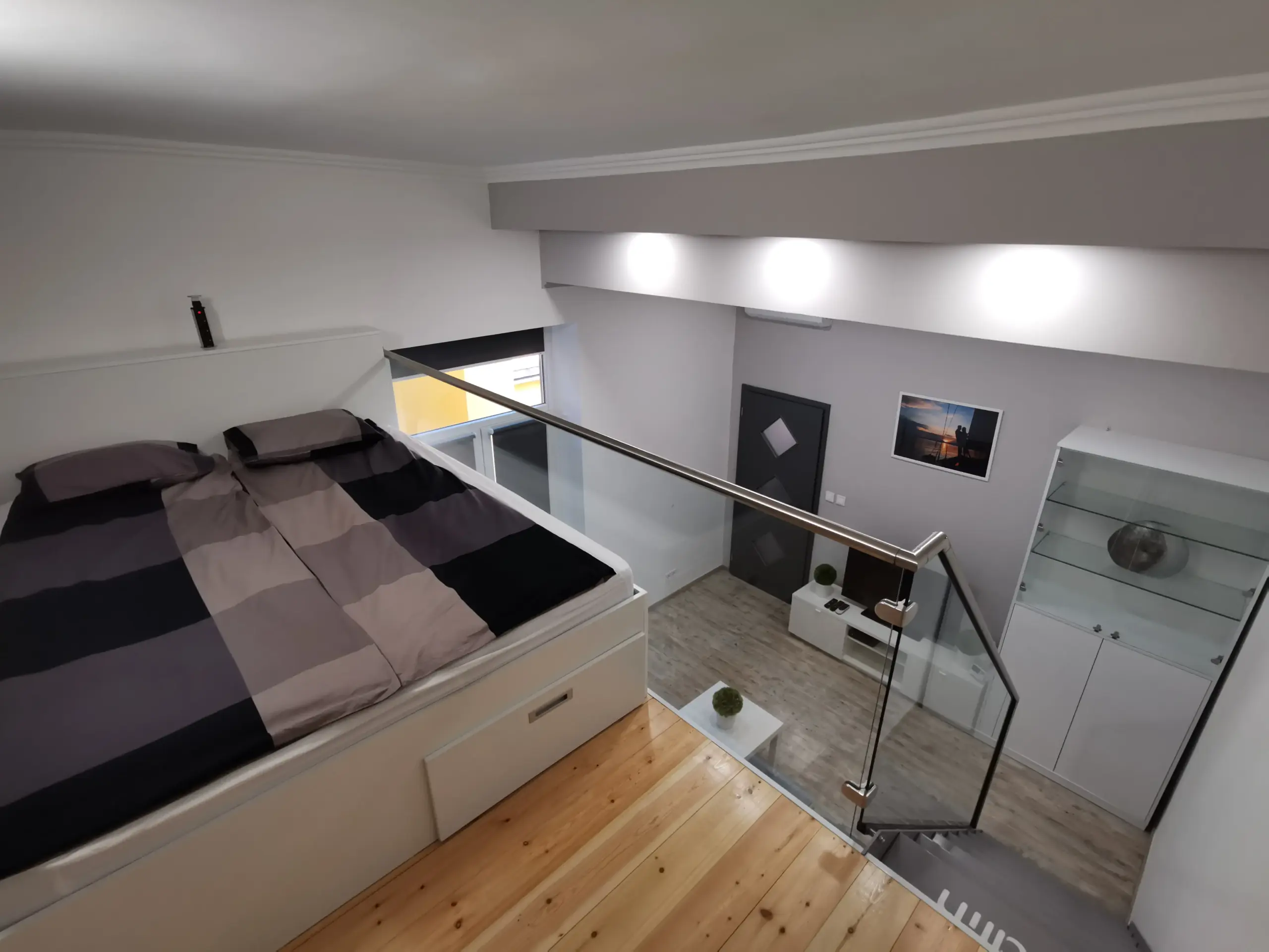 A tágas apartman egy hálószobával és egy stílusos galériával rendelkezik, ahol összesen két kényelmes franciaágy biztosítja a pihenést. Ezáltal tökéletes választás pároknak, akik romantikus kikapcsolódásra vágynak, de akár barátoknak vagy kisebb családnak is ideális lehet.
